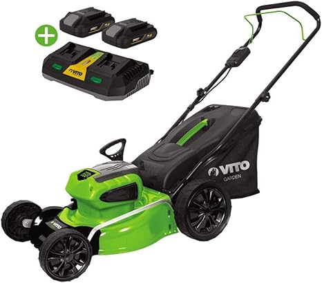 Vito Vito Ego Electric Battery Lawnmower 2 Batteries 4 Ah Double Charger Brushless Motor Easy To Adjust Cutting Levels Replaceable With 20 V Ego Batteries Up To 400 M Amazon De Garden